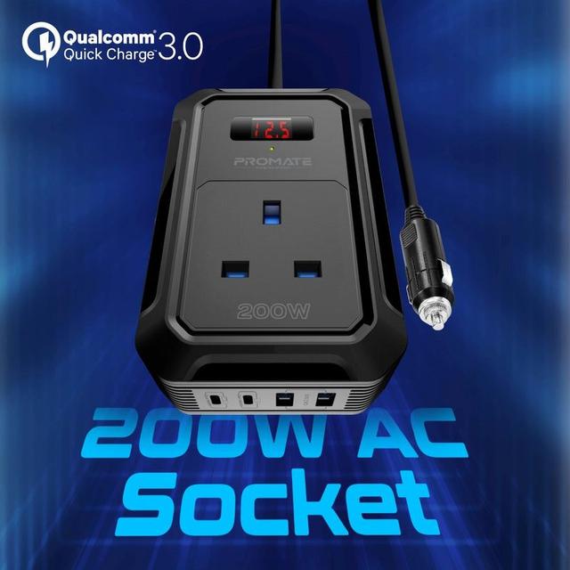 Inverto‑200W – Multi‑Port Car Power Inverter with Fast Charging, 200W AC Output