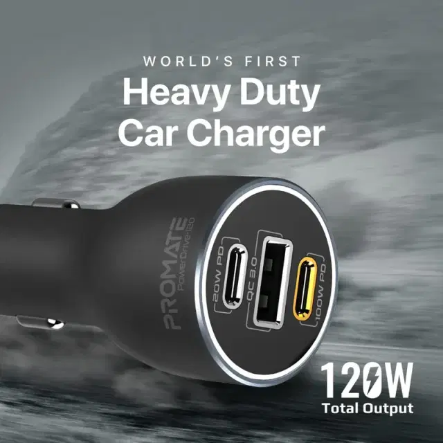 PowerDrive-120 is a powerful, car charger that has dual USB-C ports with 100W and 20 Power Delivery along with an 18W Quick Charging 3.0 port. This multi-device car charger can rapidly charge your power-hungry devices like laptops, tablets, smartphones, etc. on the go. The integrated protection chipset prevents short circuits and overcharging. A fire-resistant material ensures the safety of your device. Enjoy SuperSpeed charging for every adventure.