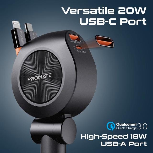 Built‑in Lightning Cable Output: 5V/3A, 9V/2.22A, 12V/1.67A (~20W)