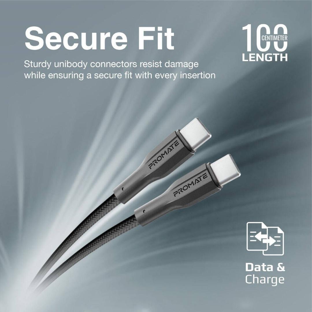 Promate XCord High-Tensile USB-C Data and Charging Cable, 480Mbps Data Transfer Rate, 20V/3A Current, Made of TPE, 60W Power Delivery, Compatible with Smartphones and Tablets, 1 Meter.