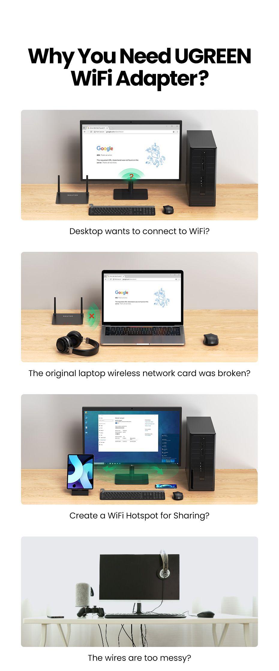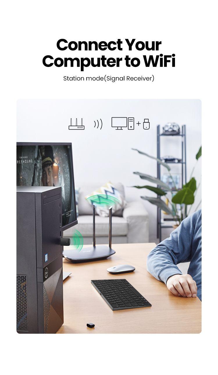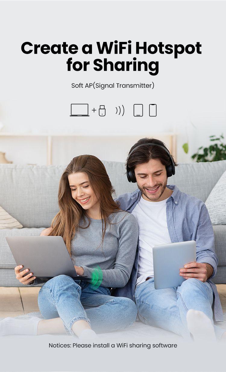 Use As Wifi Hotspot: UGREEN USB Wifi Adapter for Desktop PC supports Station Mode and Soft AP mode at the same time. In Soft AP mode, you can convert your wired computer into a wifi hotspot for other devices to use.