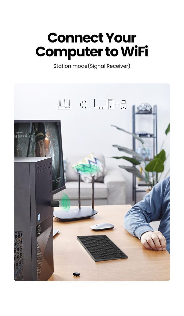 5G/2.4G Dual Band: UGREEN USB Wifi Adapter for Desktop PC supports both 2.4GHz and 5.0GHz bands at the same time, and can switch automatically in different situations. So that the network can always be fast and stable.