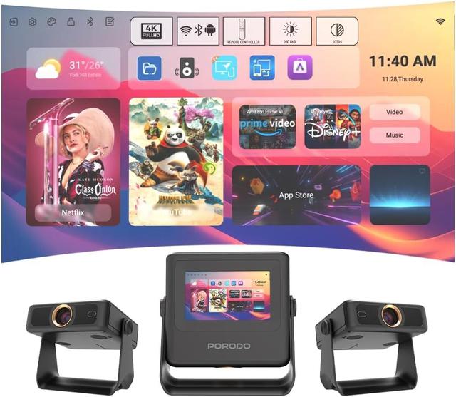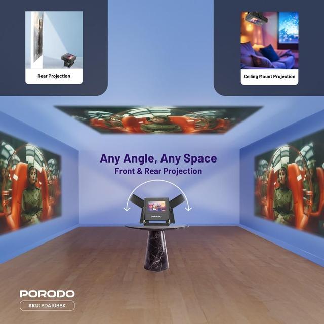 Porodo LifeStyle PDA10BBK Optivis – Smart HD Projector with Touch Display and LED Light Source