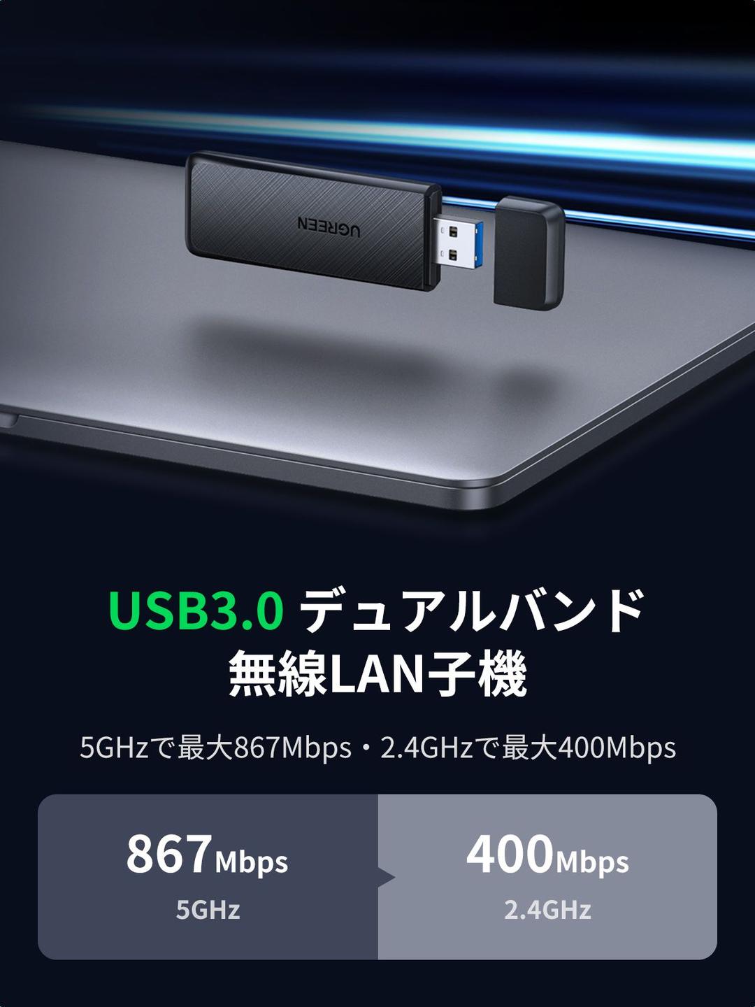 867Mbps/400Mbps High Speed: UGREEN AC1300 USB 3.0 wifi adapter can up to 867Mbps in 5.0GHz band, and up to 400Mbps in 2.4GHz band. Whether you are online gaming, surfing the Internet, online HD video streaming, upload, or download, it can perfectly meet your needs like a wired network.