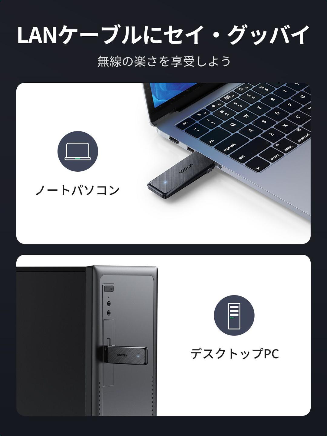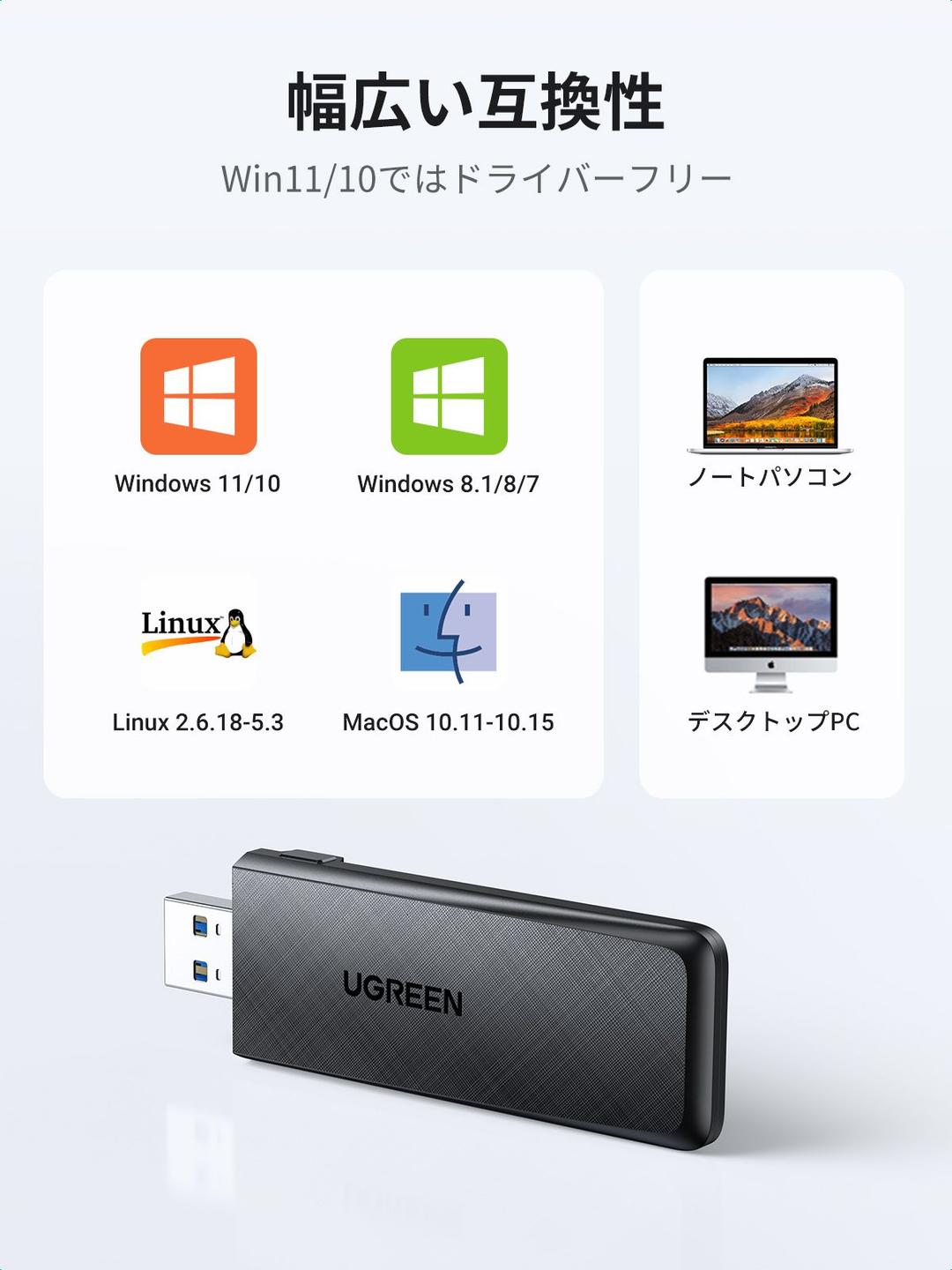 Compact Mini Size: UGREEN USB wifi dongle has a mini size of 85 x 25 x 8 mm. You can easily carry it in your office bag or pocket. When plugged into a computer or laptop, it is also inconspicuous. So it's definitely an excellent choice to extend wifi for your device.