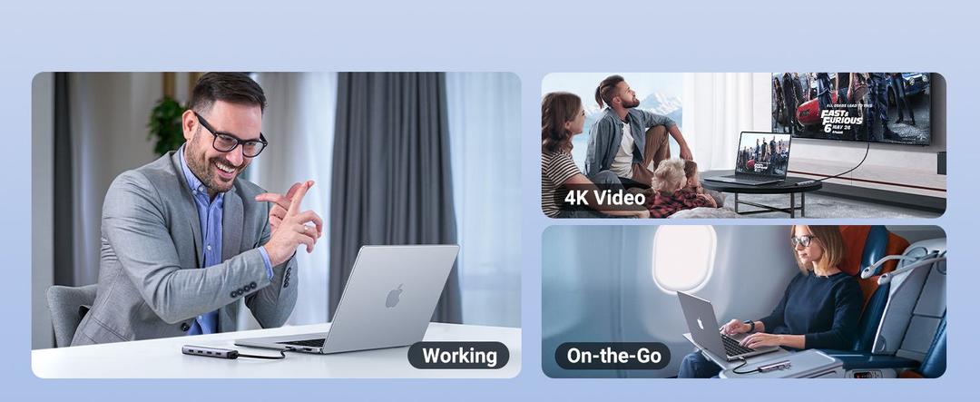 Increase the capabilities of your computer. UGREEN CM417 adapter is equipped with a number of ports, i.e. USB 3.0 or HDMI. It allows you to display 4K video and transfer data at speeds of up to 5 Gbps. With its help you can connect additional accessories to your computer, such as a keyboard or mouse. It stands out for its wide compatibility, and its portable design means you can always have it at your fingertips.