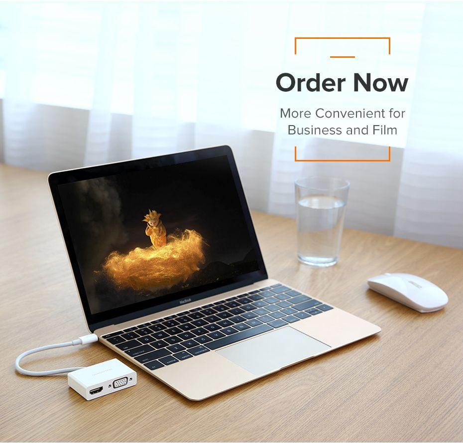 UGREEN USB Type C To HDMI + VGA Converter, 15cm - White