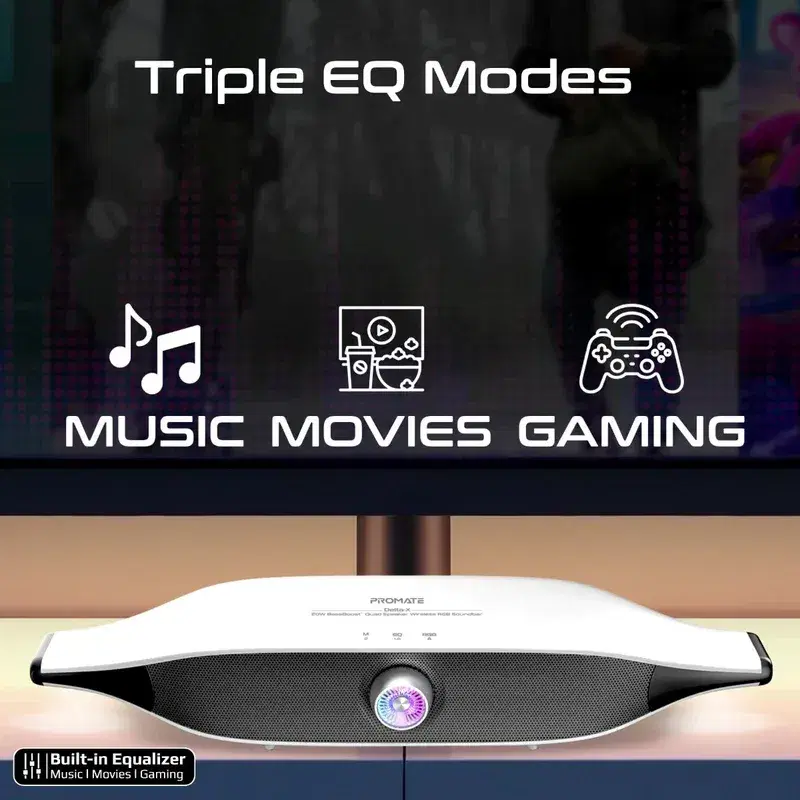 Introducing Promate’s Delta-X, a superior quality TWS speaker that delivers powerful stereo sound with a 20W speaker output. Designed with a futuristic, sleek spaceship aesthetic, it features 12 dynamic RGB lighting modes and two "landing lights" on the sides that respond to voice levels, creating a visually immersive experience. The Delta-X is equipped with dedicated dual bass and dual treble drivers, offering three EQ modes for a personalized audio experience. Its built-in omnidirectional hands-free microphone facilitates seamless hands-free communication, whether during video games or conference calls. The robust 6400mAh lithium-ion battery provides 20 hours of playtime with RGB lighting or 30 hours without, ensuring long-lasting enjoyment. With efficient power usage, a wireless operating range of up to 20 meters, support for USB flash drives up to 256GB, and a 20W USB-C input for fast charging, the Delta-X is the ultimate portable speaker for both audio and visual enjoyment. Audio that is out of this world! Combining style, performance, and versatility, the Delta-X is the pinnacle of innovation in portable audio.