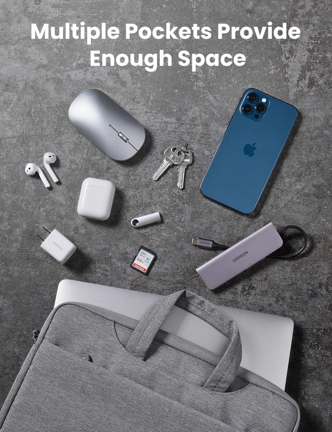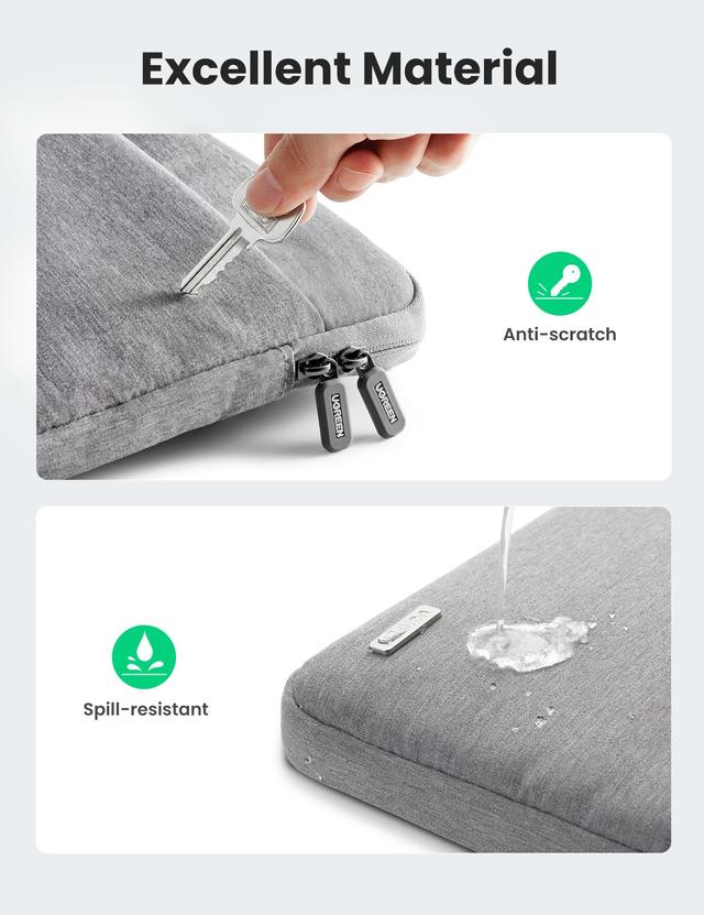 UGREEN bag is composed of three layers. The outer layer assures high protection against moisture and flooding. In case of rain, your laptop will be secured! Aesthetic look of the product is guaranteed for a long time because it is not susceptible to scratching.