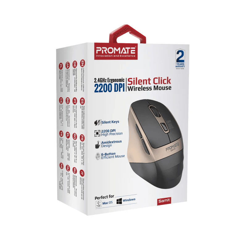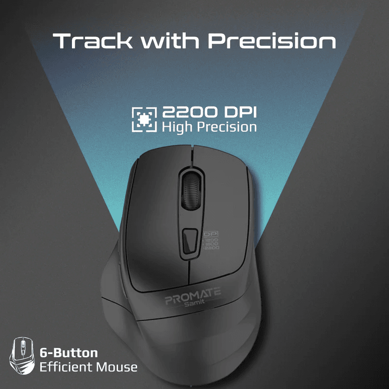 Experience noise reduction and the same clicky feel with this silent-click wireless mouse. Samit reduces wrist fatigue and ensures long-term comfort with its streamlined thumb rest and ergonomic design. Track through the screen with drop-dead accuracy using the high-grade optical sensor and adjustable DPI controls up to 2200 DPI. Low power consumption ensures you don't need to worry about changing batteries frequently.
