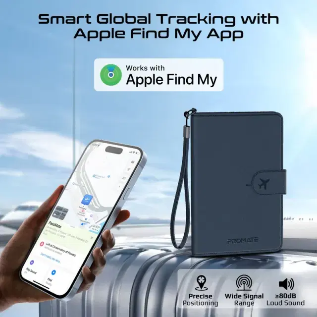 Promate PassMate – Smart Leather Passport Holder with Tracking & RFID Protection