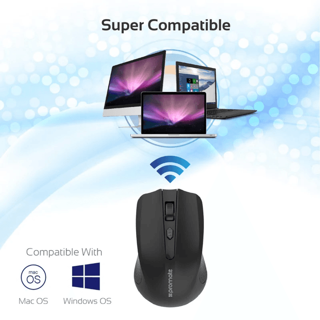 The Promate Clix-8 is a next-generation wireless optical mouse that works on any surface thanks to its use of an 800/1200/1600 DPI optical sensor. It is lightweight, portable, and extremely accurate. It comes with a bundled nano USB receiver that offers a plug-and-play functionality and gives it a working range of up to 10 meters. It's perfect for both home and office use.