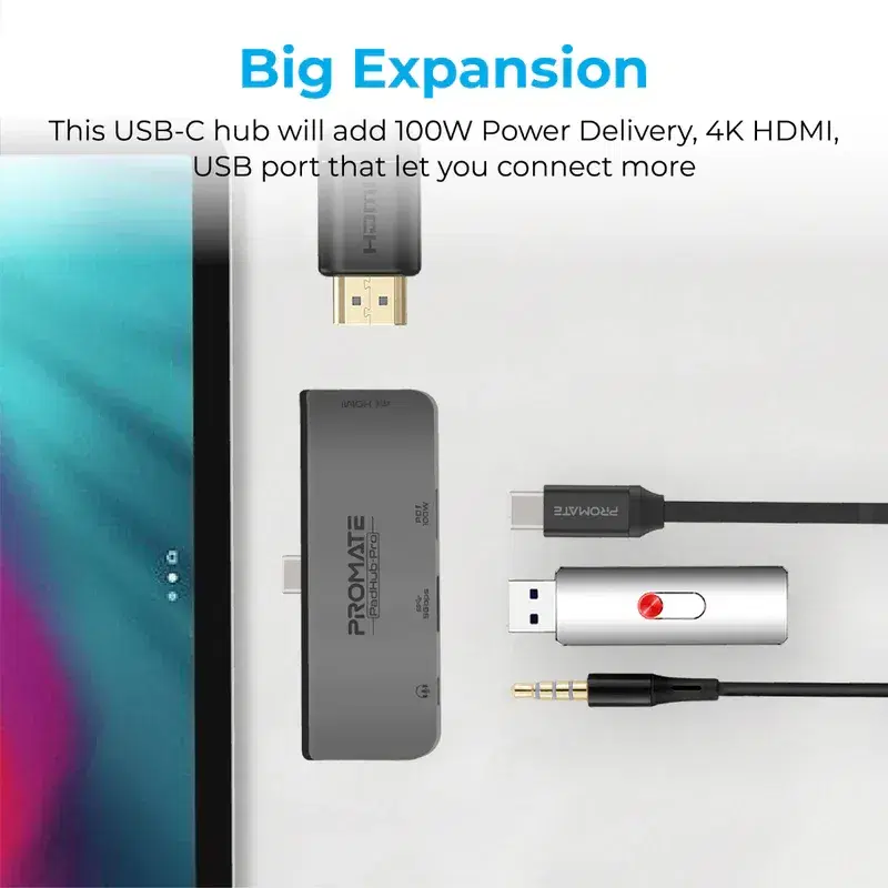 Open up a plethora of possibilities with PadHub-Pro, a 4-in-1 USB-C hub made for tablets and USB-C laptops. Mirror or extend your USB-C PC/laptop/tablet screen, stream 4K UHD video using the HDMI port. This hub also includes a "Charging Bridge" that lets you power up your connected laptop even when using multiple peripherals. Weighing about an ounce and super small, this ultra-slim hub is designed to fit perfectly into any tablet or smartphone.