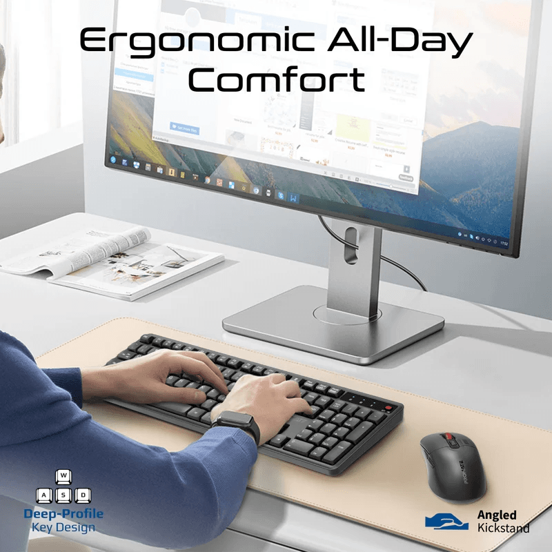 Upgrade your productivity with the ProCombo-15, a high-performance wireless keyboard and mouse combo designed for silent efficiency and all-day comfort. The ultra-quiet keyboard features a sleek low-profile design and keystrokes quieter than 22dB, perfect for shared workspaces or late-night sessions. Built to last with 10 million keystroke lifespan, it supports seamless Plug and Play connection without any software installation.