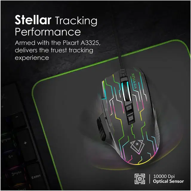 Vertux Kryptonite Wired Gaming Mouse — High Precision & Fast Tracking