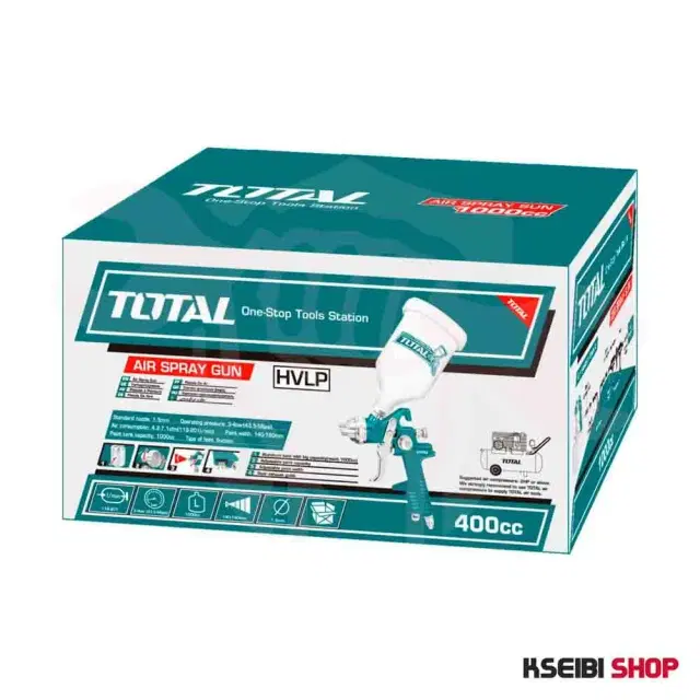 Doco air-operated paint spray gun with a 600 cc tank capacity, operating pressure 2-3.5 bar, spray nozzle diameter 1.4 mm, easy refilling process.