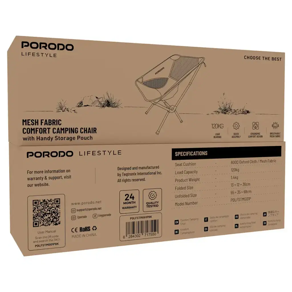 Porodo Lifestyle Mesh fabric Comfort camping chair with Handy Storage Pouch