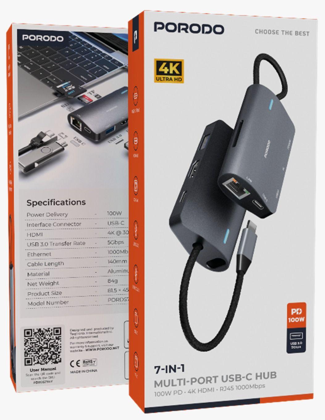Porodo 7-in-1 Multi-Port USB-C Hub – All in One