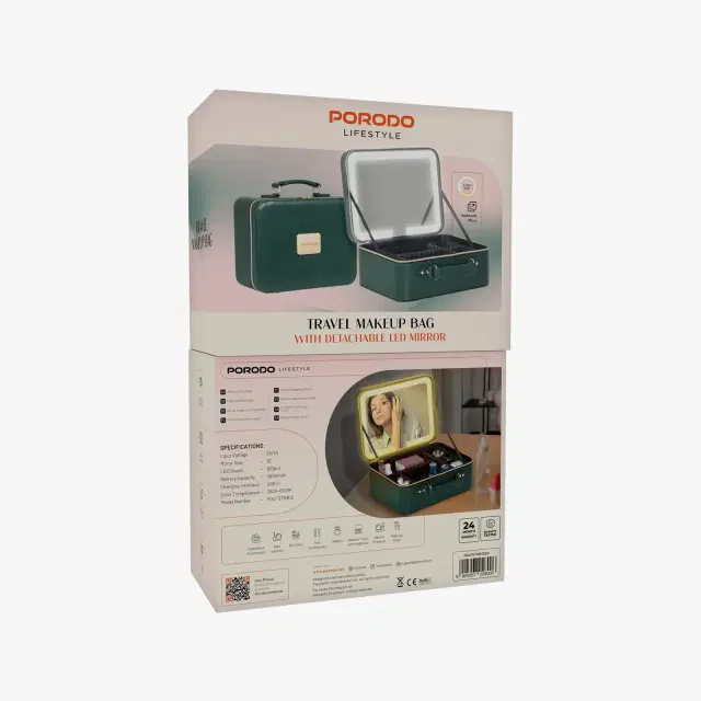 Porodo Lifestyle Travel Makeup Bag With Detachable LED Mirror – Organized & Flexible