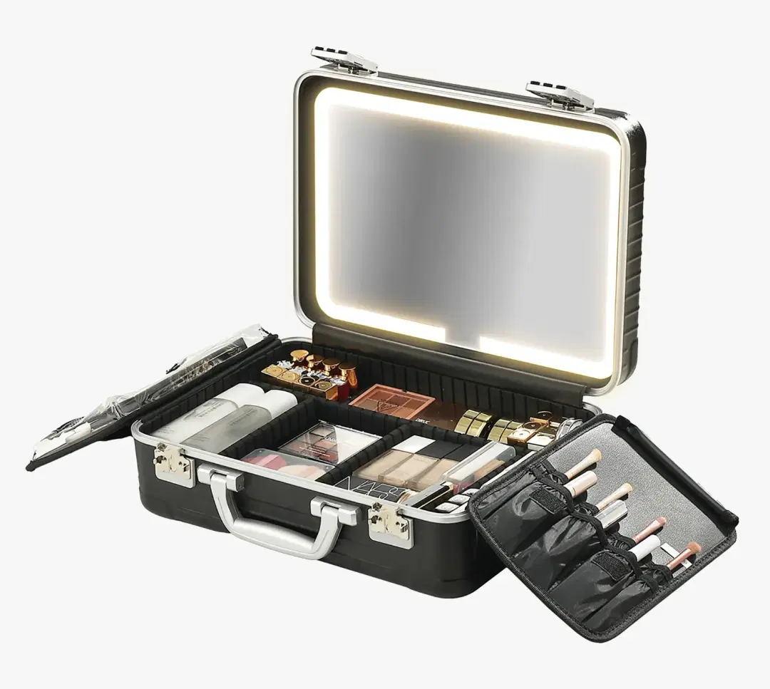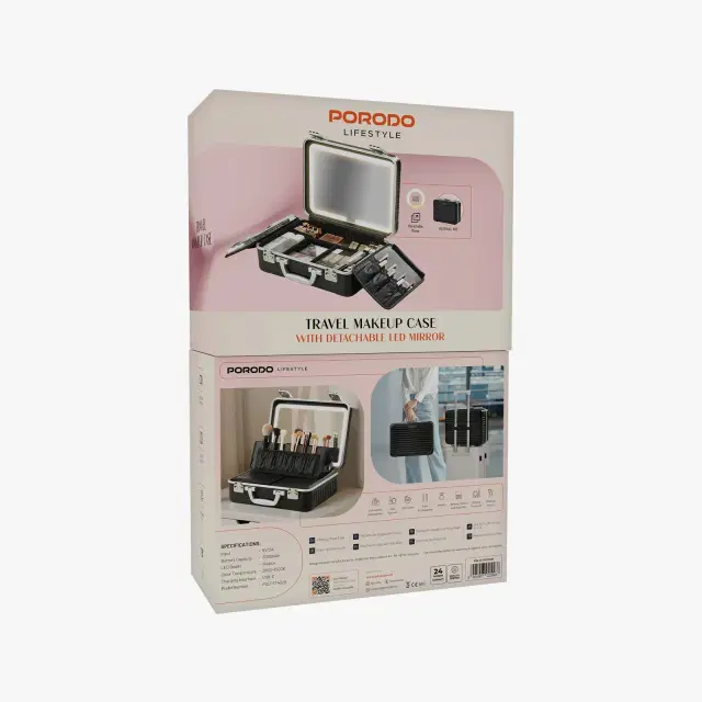 The case is a major advantage for beauty lovers who move around a lot. The black Porodo Lifestyle Travel Makeup Case with Detachable LED Mirror is a must-have. The sturdy ABS plastic case may be bulky, but it is still portable and features numerous compartments that help you organize your essentials and keep everything from cosmetics, brushes, to skin care products tidy. On top of that, the removable LED mirror with its 144 LED beads generates light in the color temperature range of 2800–6500K, which implies that the light is very soft and very vivid, thus unlocking the secret to super detailed and beautiful makeup even in poorly lit spots. The brightness can be adjusted according to your needs, which implies that you can have either a gentle ambient glow or bright and detailed lighting depending on your mood. The LED mirror is powered by a rechargeable 3000mAh battery, and it has a USB-C charging interface with a power rating of 5V/2A. Therefore, the mirror can make you look beautiful for several hours continually, even when you’re traveling. If you think of a makeup case that is easy to carry but packed with smart features, then it's fashion, convenience, and technology all in one; hence, it becomes a must-have travel accessory for anyone wanting to be flawless at all times and anywhere.