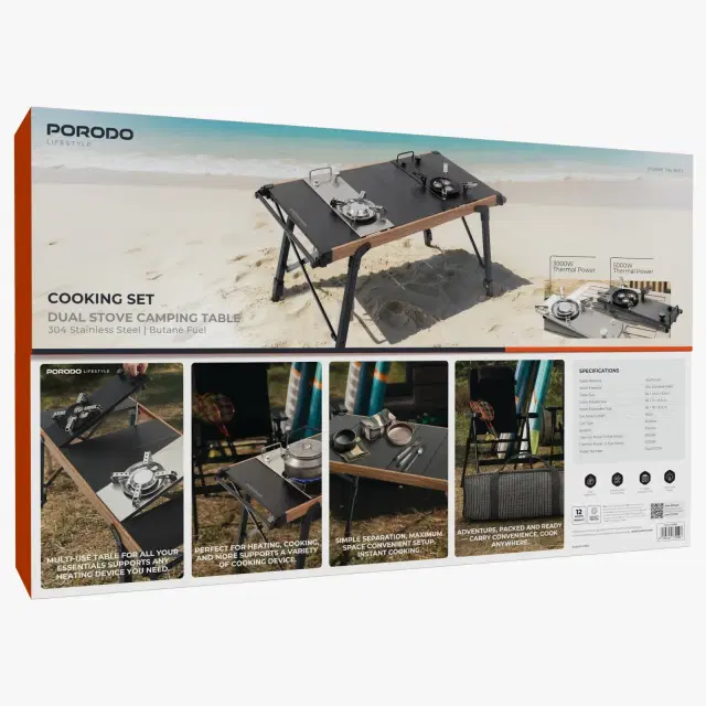 Porodo Lifestyle Cooking Set Dual Stove Camping Table - PDLFST219BK