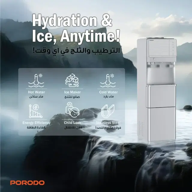 Porodo Lifestyle Water Dispenser & Ice Maker – All-in-One Convenience