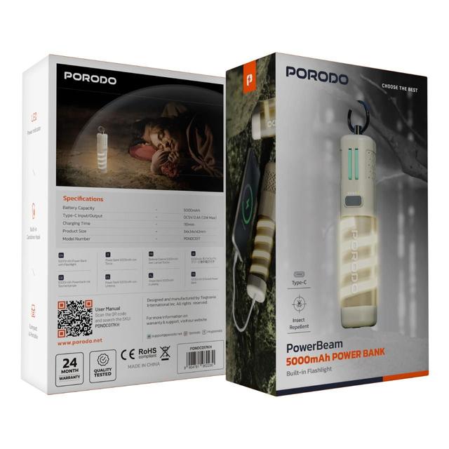 Porodo PDNDC017KH Powerbeam 5000mAh Power Bank with Flashlight & Insect Repellent