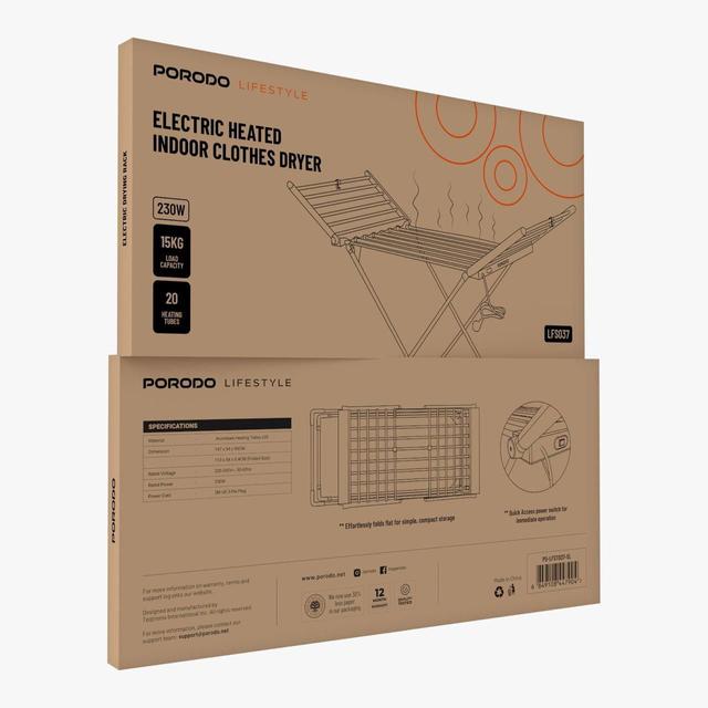Porodo PD-LFST037-SL Lifestyle Electric Heated Indoor Clothes Dryer – Fast, Efficient Indoor Drying