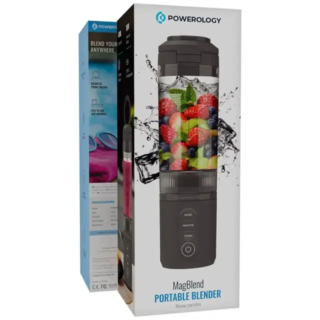 The Powerology Magblend portable blender is an outdoor gadget whose power and versatility are its main draws. With a generous 470ml capacity, it allows you to not only prepare but also experiment with a wide variety of blended drinks, from smoothies and shakes to large servings. It features a powerful motor, reaching speeds of up to 18,000 RPM, along with sharp stainless steel blades, so ice is crushed effortlessly, and blending is nearly perfect. The six-blade design ensures even blending, and the magnetic phone holder allows for hands-free operation and effortless phone security. A 2000mAh battery guarantees long runtime, and with USB-C charging, you can charge it quickly and conveniently. Its compact size fits in most car cup holders, making it the ideal travel blender. Made with durable ABS and PCTG materials, the Powerology Magblend portable blender offers a combination of durability, ease of use, and portability, ensuring you have healthy and refreshing drinks with you wherever you go.