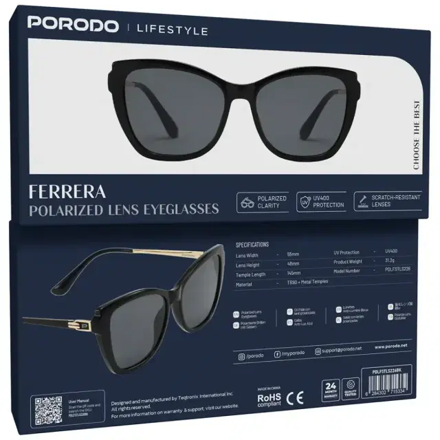 Porodo Lifestyle Ferrera Polarized Lens Eyeglasses - PDLFSTLS226BK