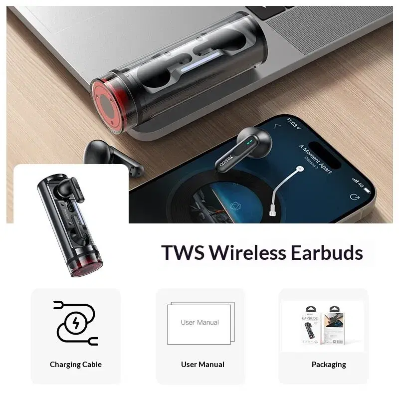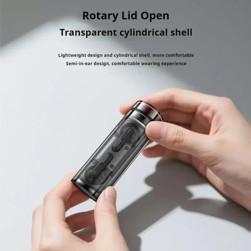 These headphones feature a unique transparent cylindrical shell, ensuring easy use with a rotating cover mechanism. The sleek, half-in-ear design provides an exceptional visual and wearing experience.