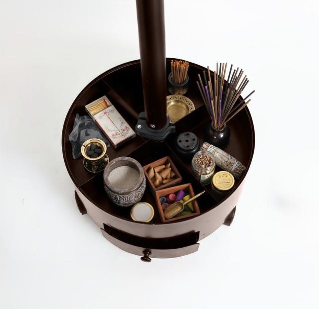 Built-in tray keeps incense and accessories neatly organized.