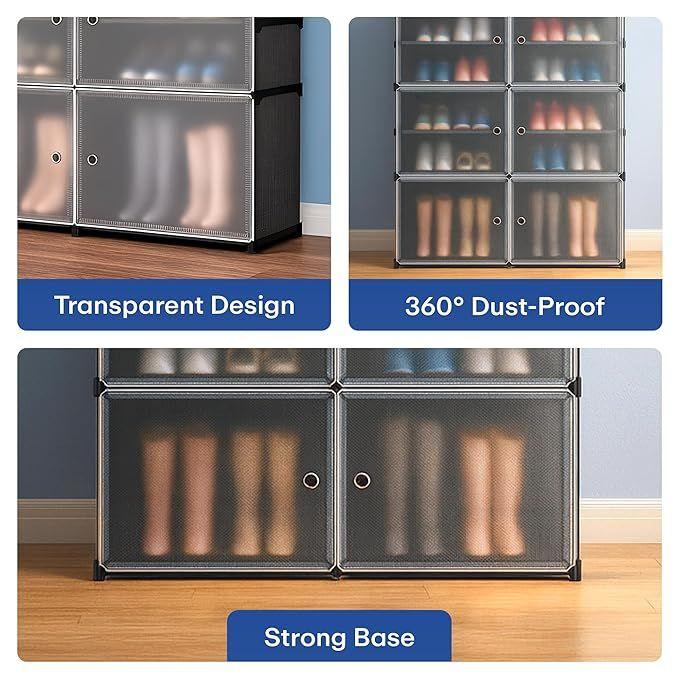 Dustproof Front Doors with Magnetic Suction: Each cube features a transparent, waterproof swing door with a built-in magnet, ensuring the doors stay tightly closed to protect your shoes from dust.