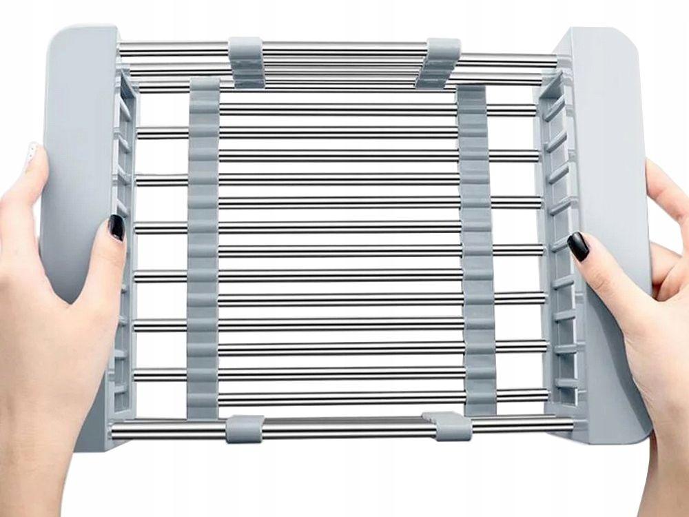 Kitchen organization just got smarter with this expandable sink drain basket! This clever rack stretches from 11.6 inches when collapsed all the way out to 18.2 inches extended, so it can fit practically any sink size. Made from heavy-duty 304 grade stainless steel, this thing is built to last - it resists rust, acids, and alkalis, and can handle heavy loads of dishes, cups, and pots without bending or warping. The rotating screws lock the width securely once you've got it positioned perfectly in your sink. The ABS pads on the bottom are genius - they prevent sliding and protect your sink or countertop from scratches. You can use it multiple ways too: as a drying rack for freshly washed dishes, for rinsing fruits and vegetables, or even as a countertop organizer for utensils. The dimensions are 18.2\\\ L x 6.7\\\ W x 3.7\\\ H when fully extended, giving you plenty of space for all your kitchen needs. Cleaning is a breeze since the smooth stainless steel surfaces wipe clean instantly - no stuck-on gunk or hard-to-reach corners. It comes with a sponge and towel too, which is a nice bonus. The space-saving design means it doesn't take up your whole sink when you're not using it, but expands to handle big cleaning jobs when you need it. Seriously, if you're tired of crowded countertops or struggling with dishes piling up in the sink, this expandable drain basket will change your kitchen routine. It's one of those simple tools that just makes sense and makes cleanup so much more efficient.