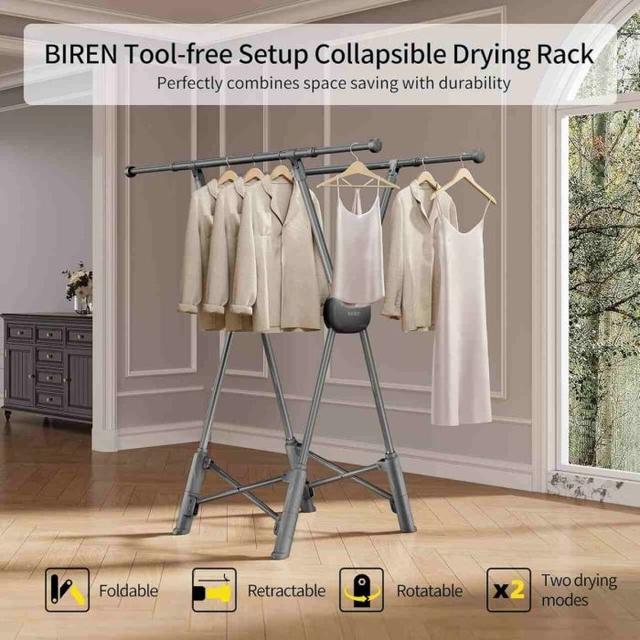 Adjustable Folding Laundry Rack with Dual Drying Modes