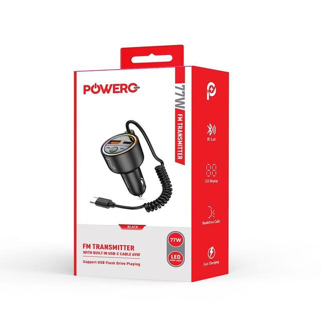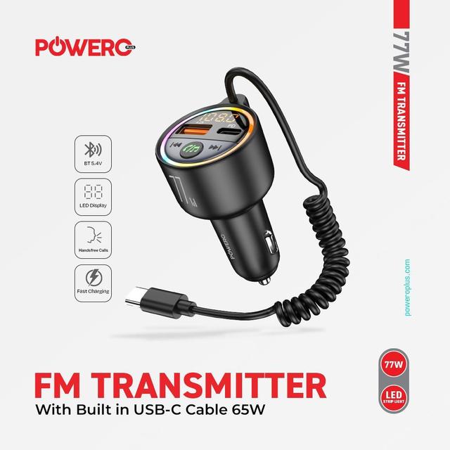 Powero PR-FM77INTT-BK 77W FM Transmitter with Built-in USB-C Cable