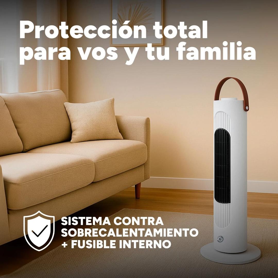 Equipped with two safety systems: overheat protection and a safety switch that automatically shuts off if the unit is tipped over, ensuring safe operation in homes, offices, and bedrooms.