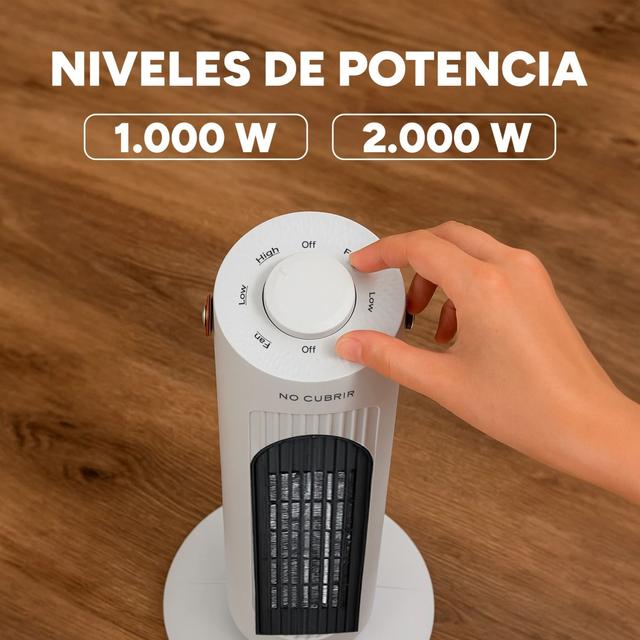 Features two heating settings (1000W/2000W) plus a fan-only option, allowing you to adjust the temperature to your comfort and seasonal needs.