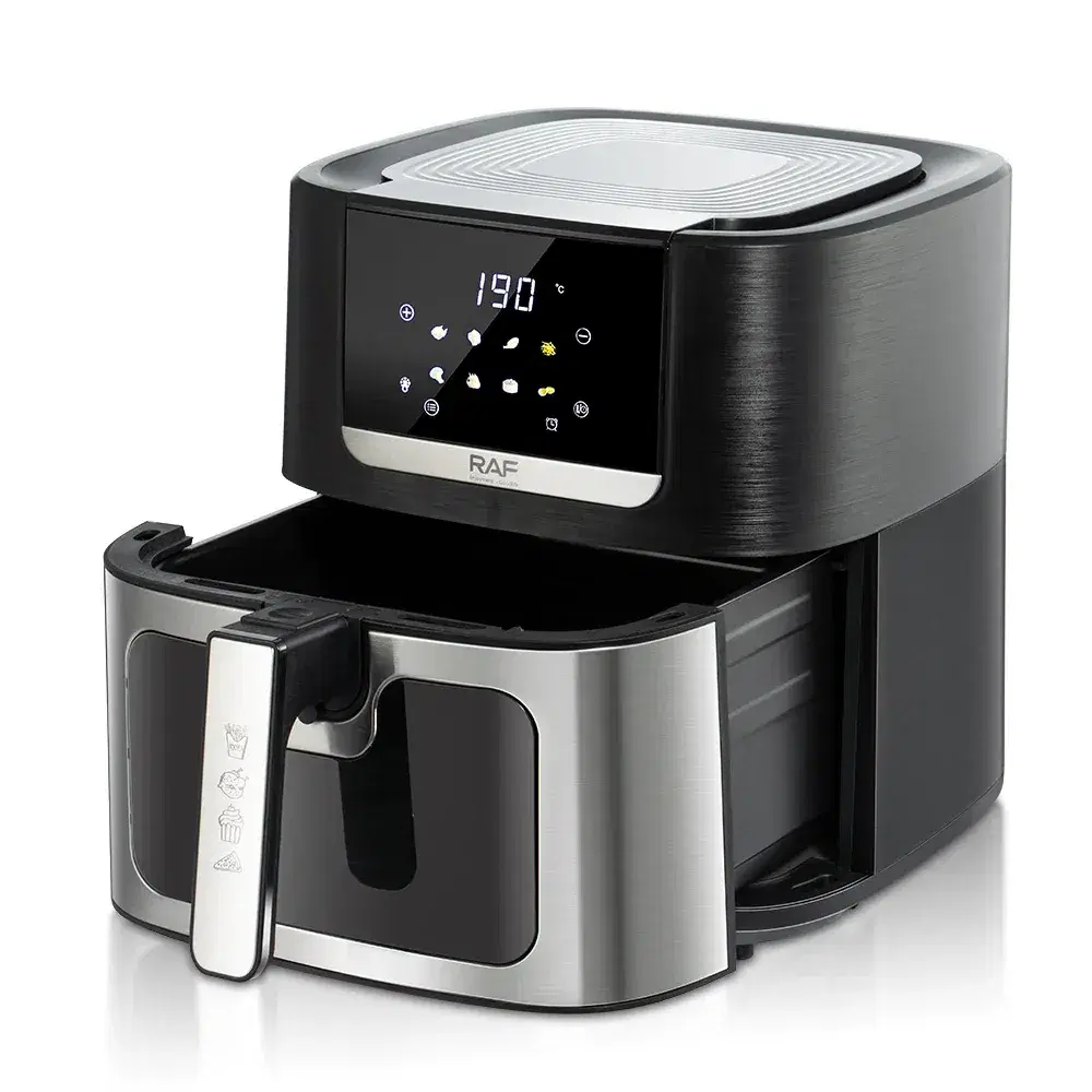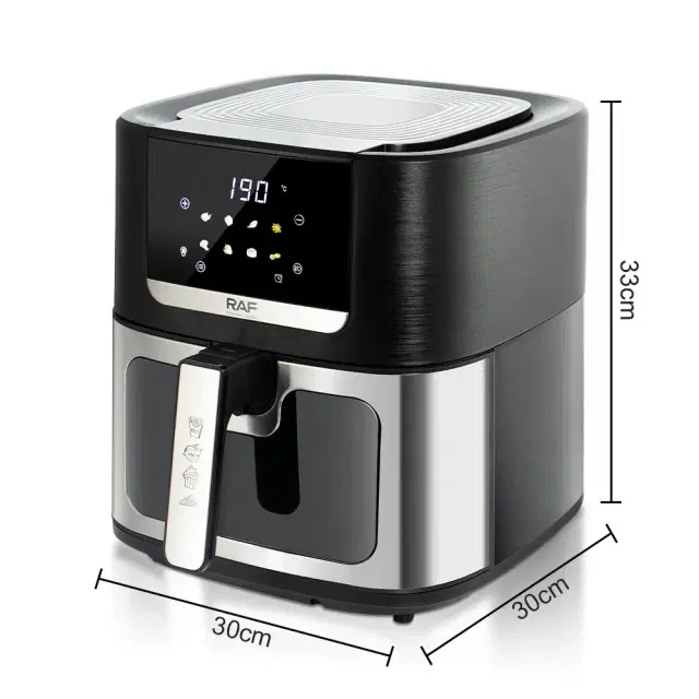 The RAF 8L Air Fryer revolutionizes home cooking with its 360° hot air circulation, reducing oil usage by up to 80% for healthier meals. This versatile appliance functions as a fryer, grill, oven, and roaster, allowing you to cook everything from crispy fries to juicy grilled chicken.