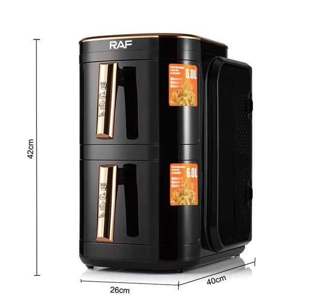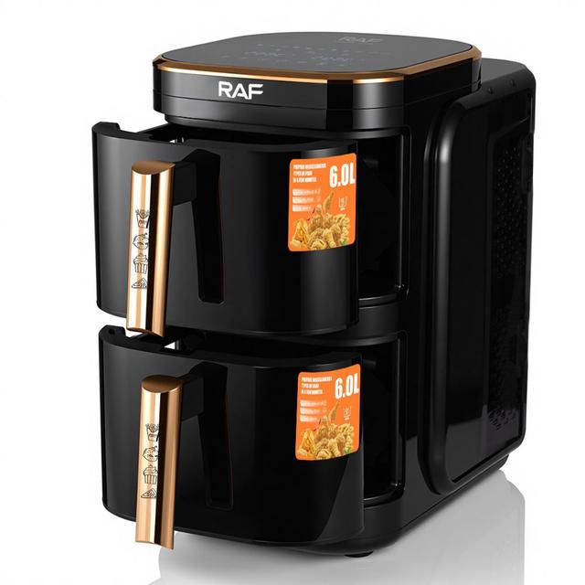 RAF 12L Dual Basket Smart Air Fryer – 2400W Oil-Free Family-Size Digital Fryer with Non-Stick Coating