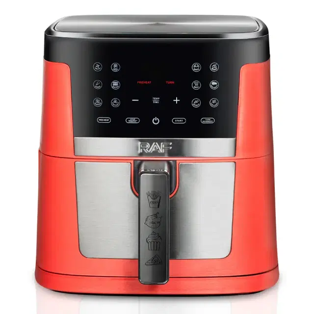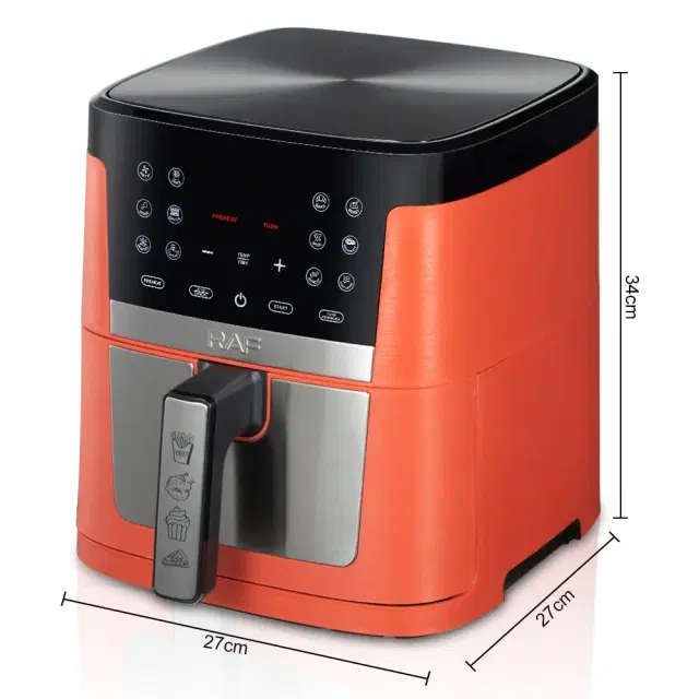 Effortlessly cook healthier meals with RAF Air Fryer 9L - the 1800W powerhouse with touch screen control and 9-litre capacity. Boasting an impressive power, this air fryer brings efficiency to the forefront with its express heat system and touch screen control. With a temperature range from 80 to 200 degrees Celsius, indulge in guilt-free cooking as it circulates hot air for crispy perfection. The guided cooking prompts ensure every dish is a success. Beyond fries, discover the versatility to cook various meals like succulent chicken or vibrant vegetables, requiring just a fraction of the oil used in traditional fryers. The 9-liter capacity caters to family-sized meals, while the detachable bin simplifies cleaning. Embrace healthier, faster, and economical cooking – RAF Air Fryer 9L, where innovation meets indulgence.