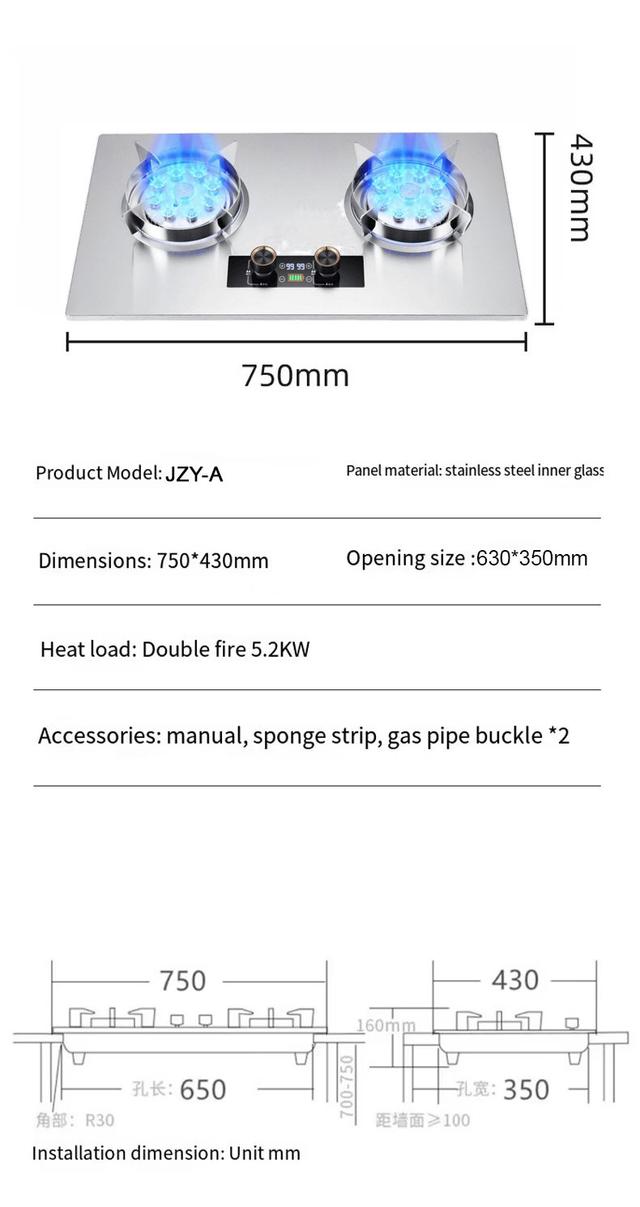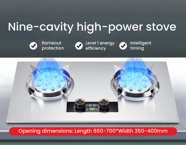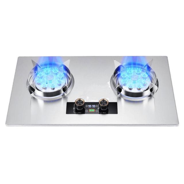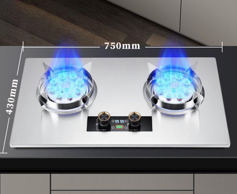 75CM Built-in Stainless Steel Dual-Fuel Gas Hob with 5.2KW Twin Burners, Electronic Pulse Ignition & Advanced Flameout Safety System