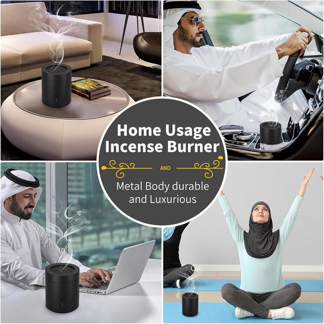 Portable incense burner for home, car, and office; rechargeable with USB port