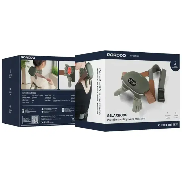 Porodo PDLFSTZ012GN Lifestyle RelaxRobo Portable Heating Neck Massager