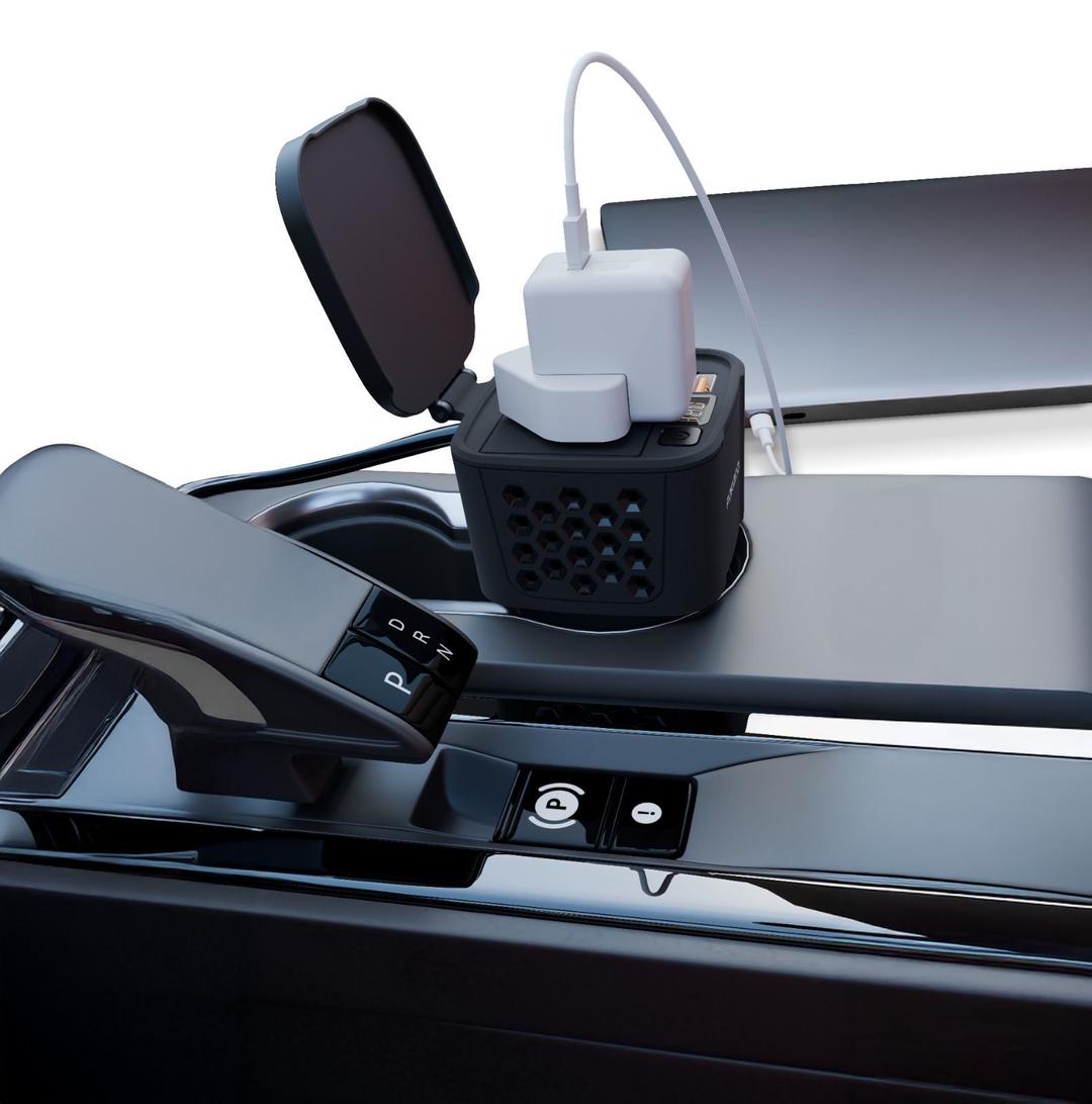 Powers and charges laptops, smartphones, tablets, and small electronics while on the road.
