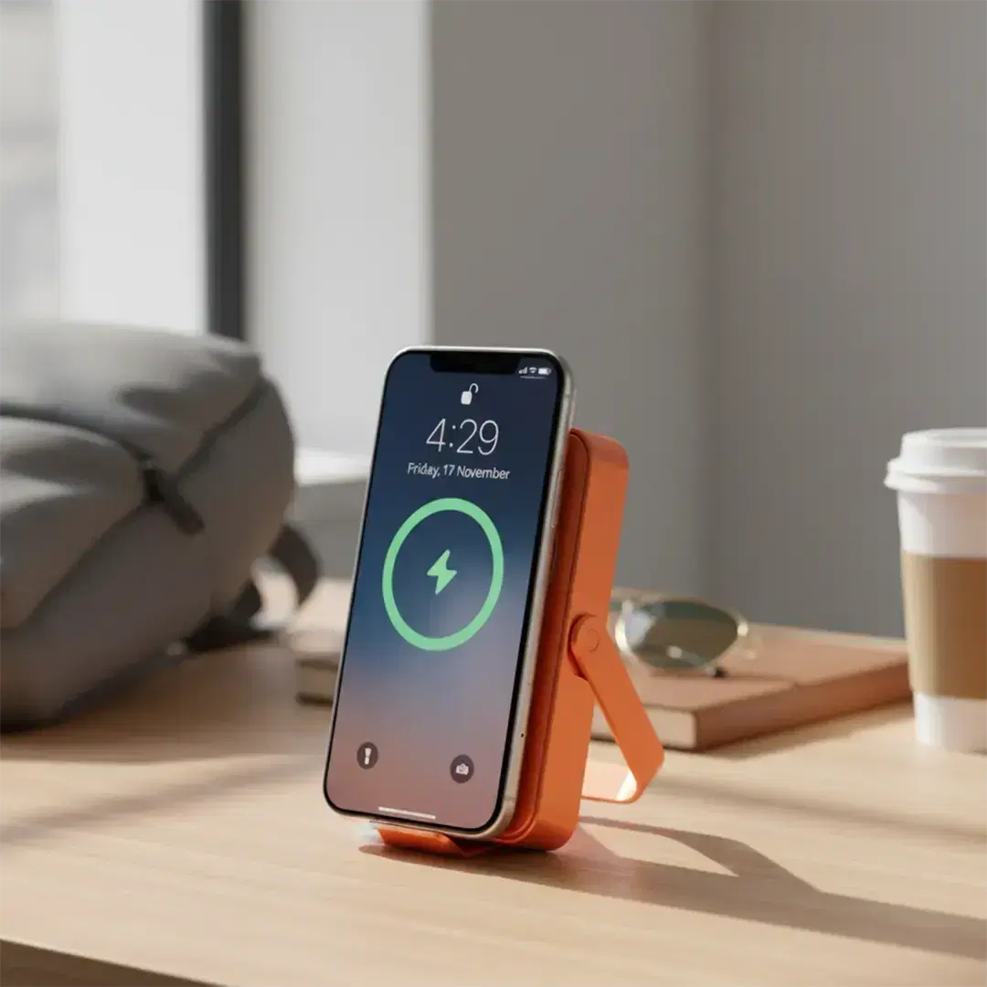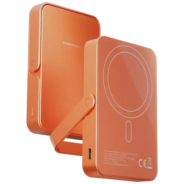 The Powerology Spetemor 10000mAh MagSafe Power Glass Surface - Orange is an impressive and elegant charging solution with 15W wireless charging for MagSafe-compatible devices. The power bank provides a great 10000mAh capacity so that your gadgets won’t run out of juice during the day. The holder built into the power bank lets you use your phone simultaneously with charging, which is very convenient for watching videos or even talking while the phone is in silent mode. The product is aluminum throughout, which means it is both strong and elegant. It is also very light, so you will not even notice it in your bag. The compact design allows for easy portability, while the MagSafe feature provides a strong wireless connection to your gadget. It has many outputs, such as USB-A, USB-C, and wireless, making it great for several devices. The Spetemor Power Bank is the ultimate device to keep your gadgets charged and ready during traveling, working, or staying home. It guarantees effective charging no matter the location.