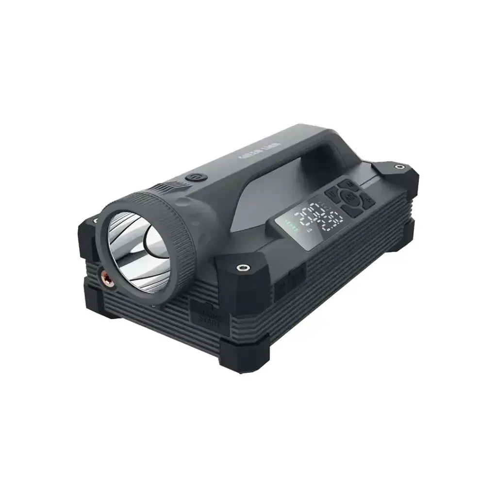 The Green Lion JX66 Jump Starter is a robust and strong tool that will keep you prepared for any eventuality. With its high-capacity 24000mAh battery, this powerful unit offers 88.8W of power and is intended for jump-starting vehicles equipped with 12V systems, which are currently in a range from 2000A to 6000A. It comes inbuilt with a PD 65W power bank that gives your devices the necessary rapid charges via Type-C or USB-A, thus ideal in emergencies and for day-to-day use. This handy, multi-functional tool comes equipped with a bright 15W LED flashlight at 2000lm with three light modes, a 5W reading light, and a digital display for easy monitoring. Integrated Air Pump: Up to 150PSI, 40L/min airflow, excellent for inflation, and perfect for inflating tires. With a compact structure, strong build, and ABS construction, the charger fills in 2 hours; meanwhile, it is equipped with smart jump clamps, nozzle adapters, an inflatable hose, and an easy storage bag.