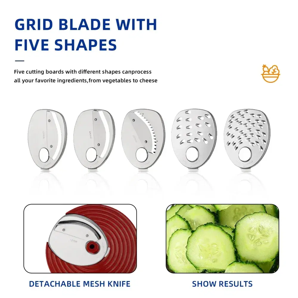 Functions: 5-in-1 (Slicing, Shredding, Chopping)